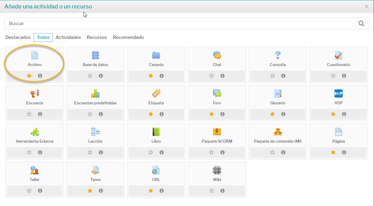 Ubicamos la sección en donde se desea agregar el archivo, y hacemos clic en “Añade una actividad o un recurso”