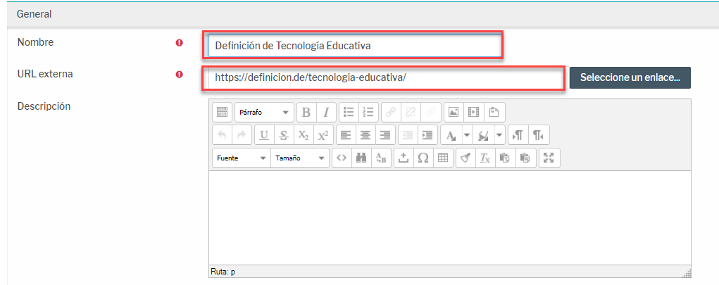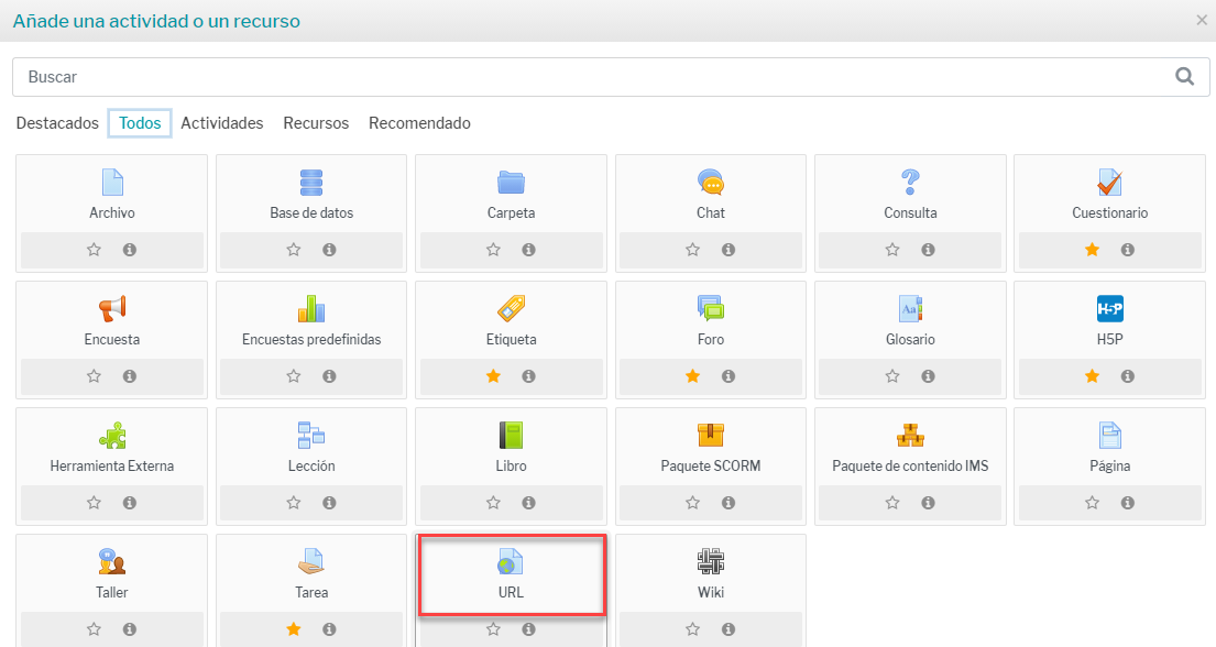 El recurso URL permite que el profesor pueda proporcionar un enlace de Internet como un recurso del curso. Todo aquello que esté disponible en línea, como documentos o imágenes, puede ser vinculado.